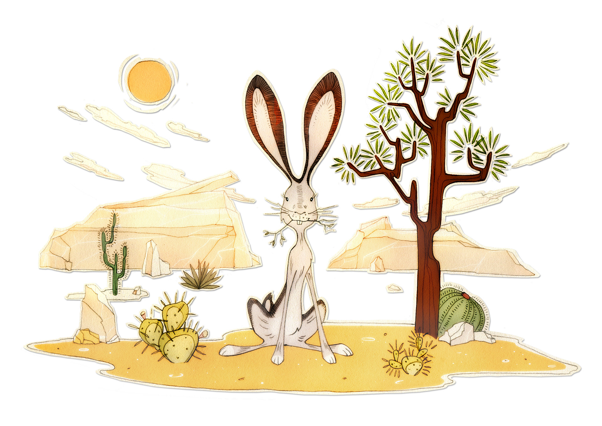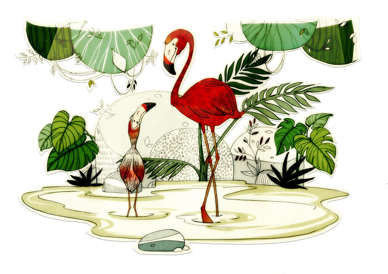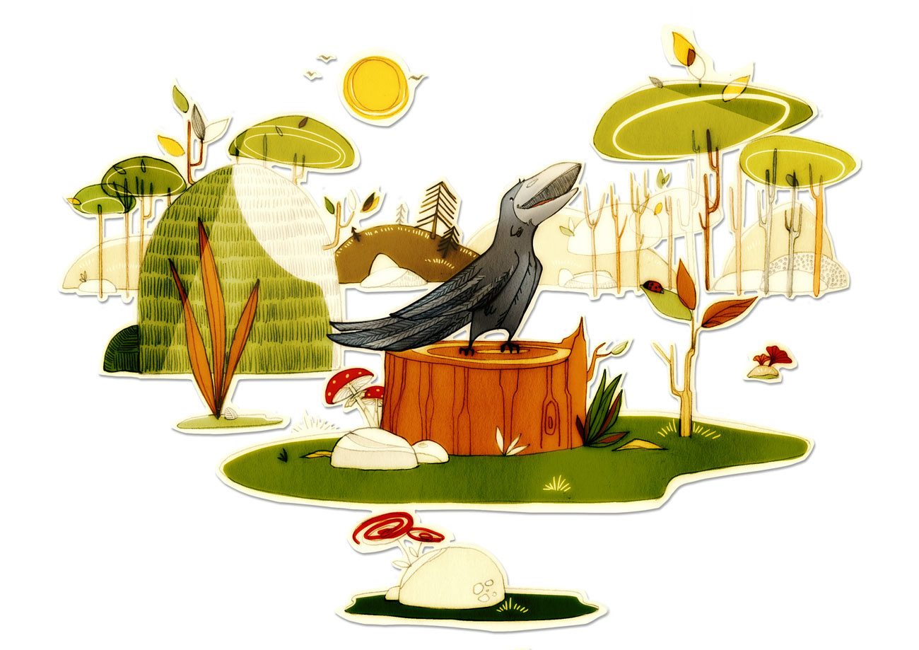 Selection of hand drawn and digitally colored illustrations.