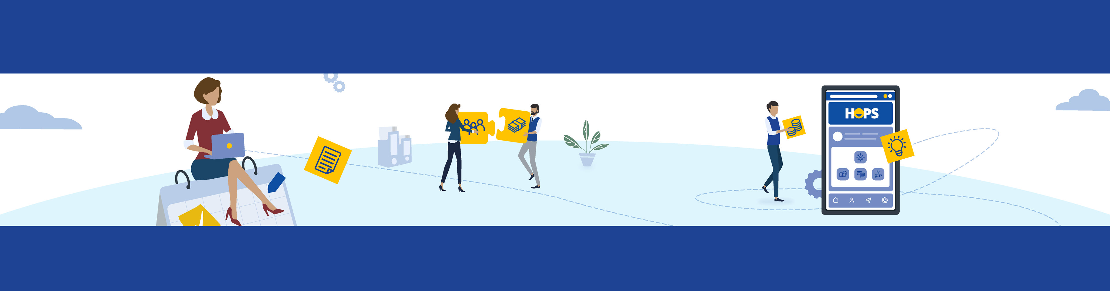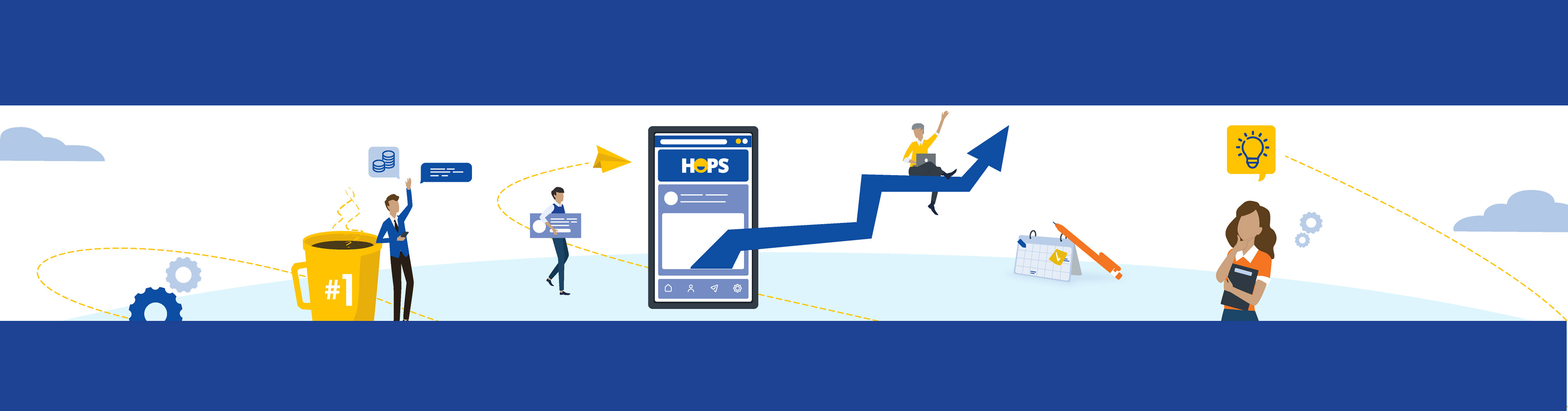 Based on provided thematic descriptions, the task was to create vector illustrations that visually explain the key functions of the app while following the established visual style of the Hops app.